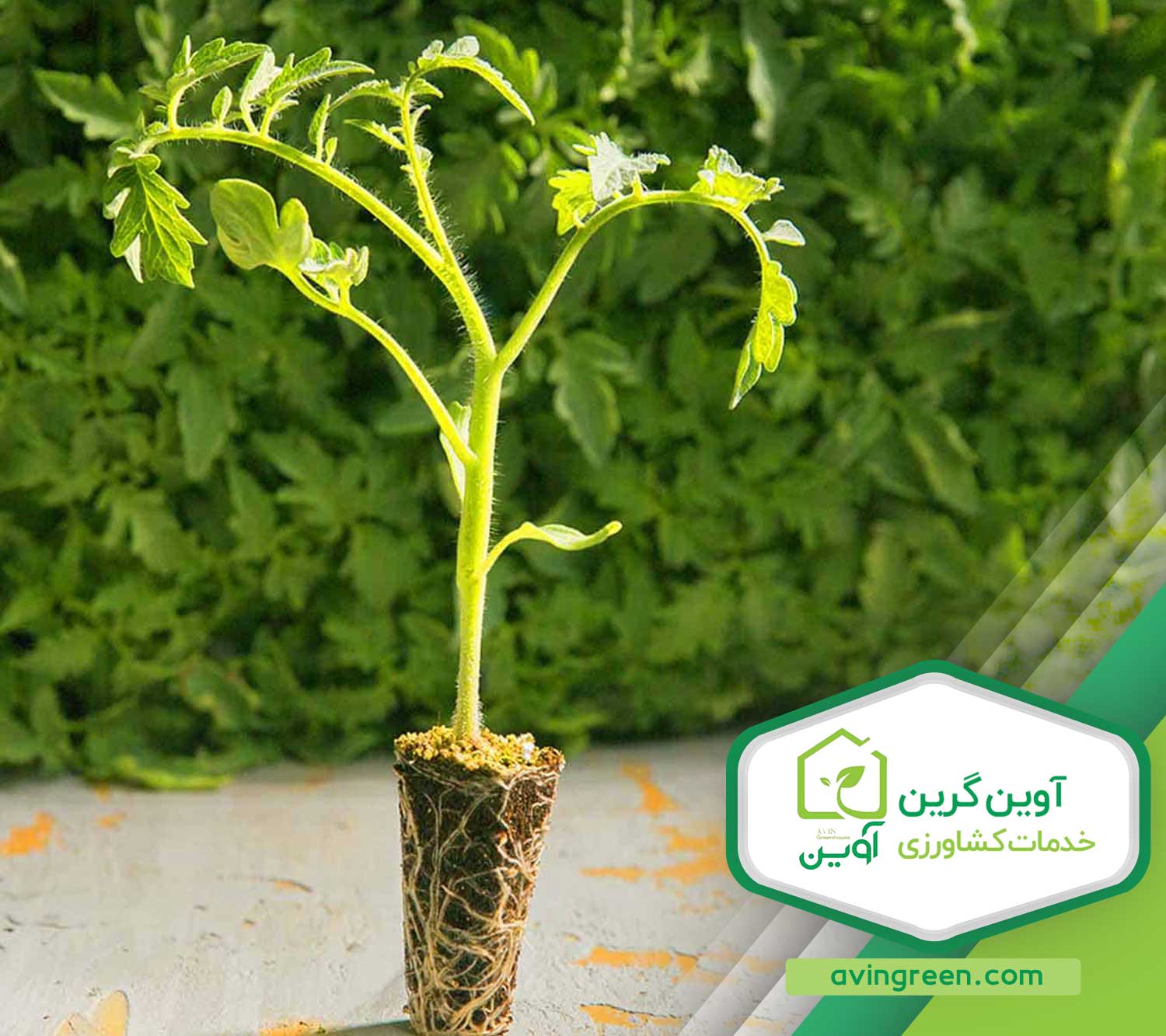 - بهترین زمان کاشت گوجه فرنگی و انتقال نشا گوجه فرنگی از سینی نشا به گلدان، زمانی است که برگهای سوم و چهارم گیاه روییدهاند.